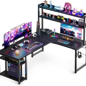 L Shaped Gaming Desk with Hutch, Computer Desk with Storage Shelves, 59" L Shaped Desk for Home Office, Corner Desk, Black