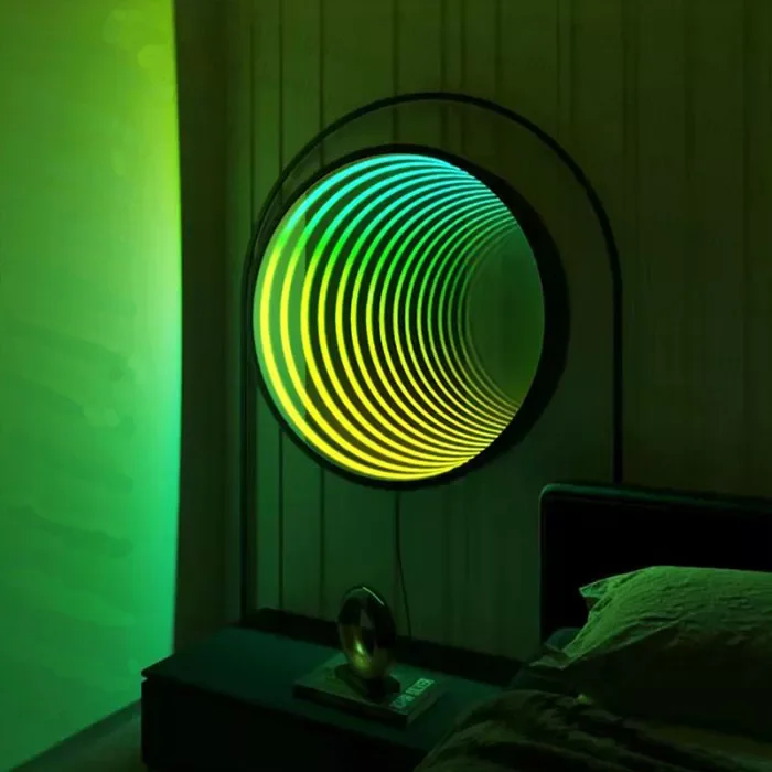 * [UNIQUE DESIGN] Adorable 3D mirror tunnel light, fantastic LED light, this LED light decoration adds vitality to the bedside table. It creates a warm atmosphere for your venue. The light can be adjusted to 358 kinds of magical atmosphere effects.