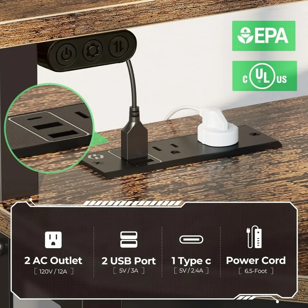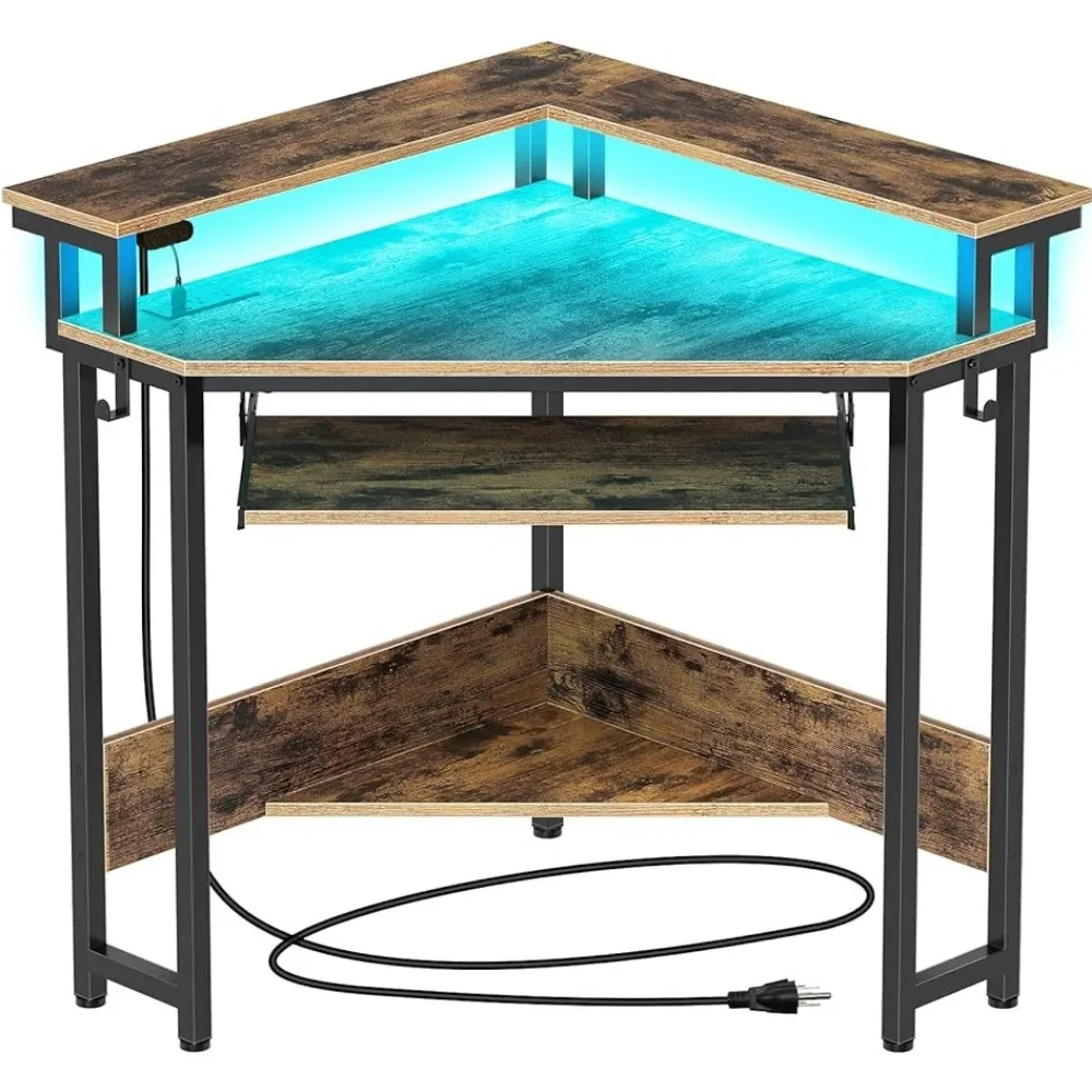 - [Safety Power & Cool LED Lights] This corner computer desk comes with 2AC+2USB+1Type C power strip to meet your charging needs for your phone, ipad, and laptop, and refuse power anxiety! This corner computer desk also comes with 7 colors and 12 modes of lighting, which can decorate your corner space, more beautiful and cool!