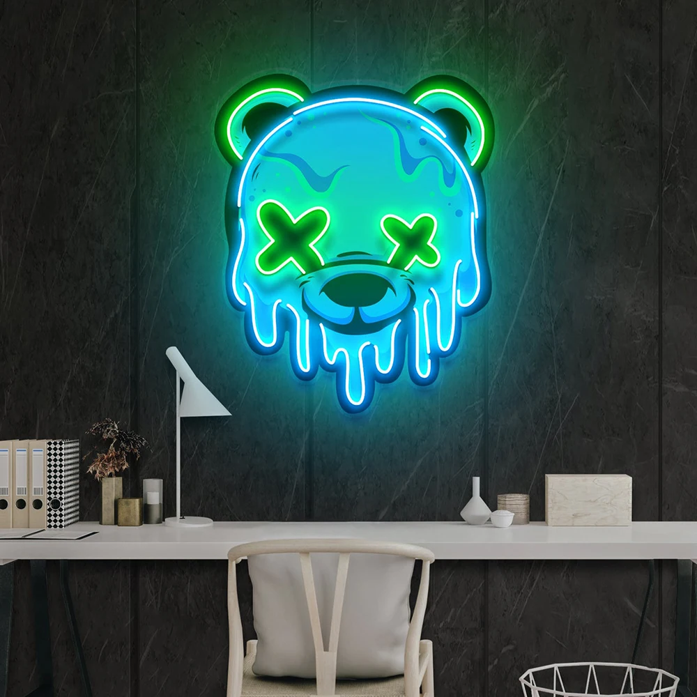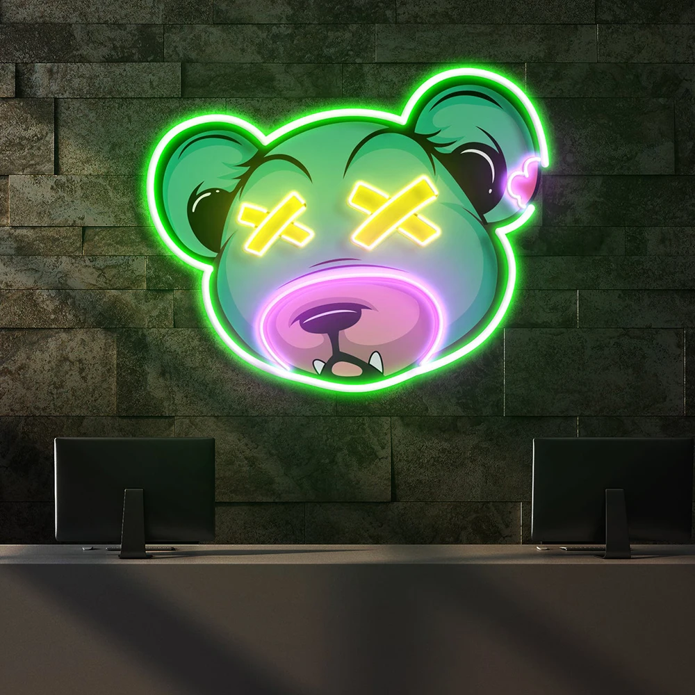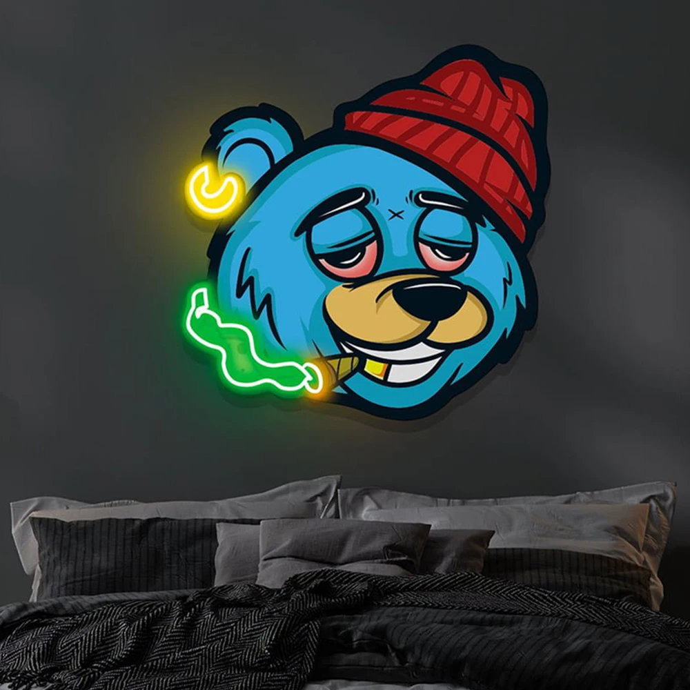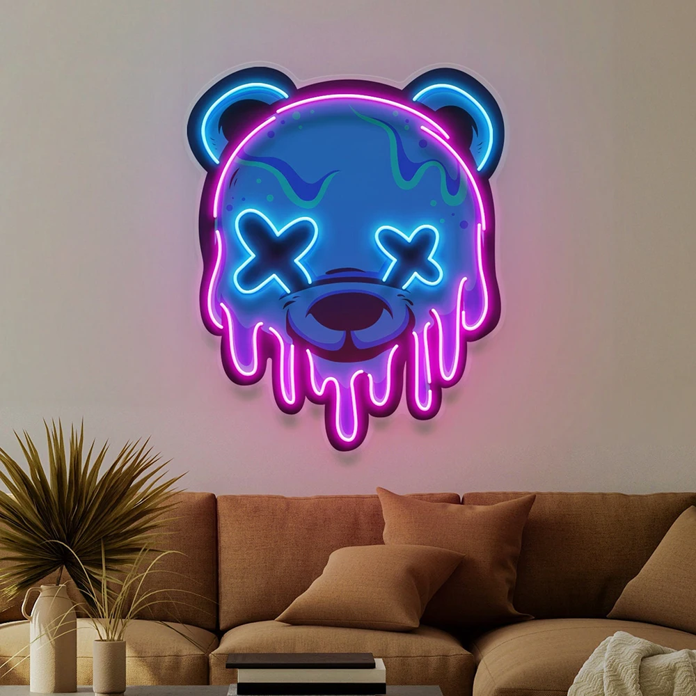 Custom Neon Sign Anime Bear Artwork Acrylic LED Neon Light Gaming Room Bedroom Wall Decor Art for Kids Birthday Gifts