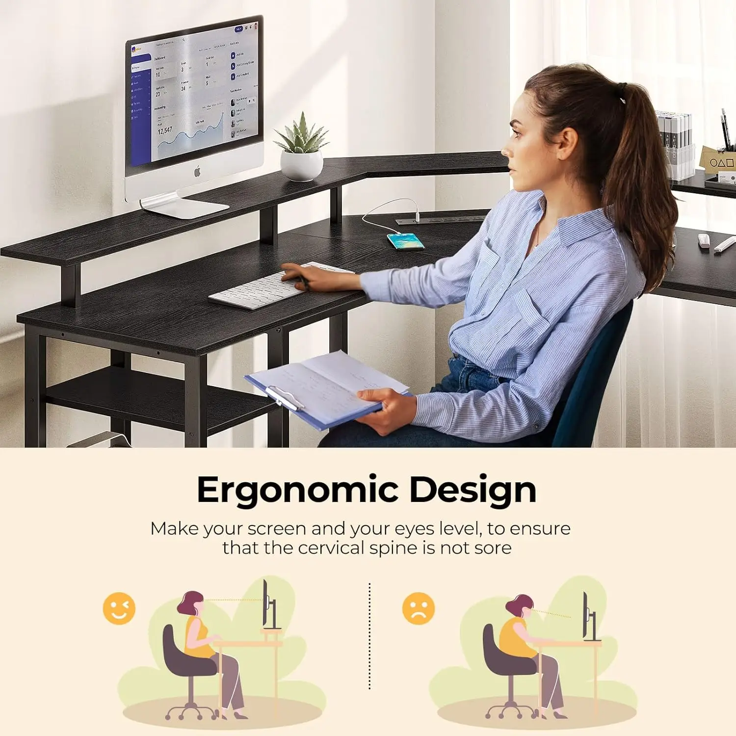 1 Reversible Computer Desk 2 Monitor Stand 3 Adjustable Shelf