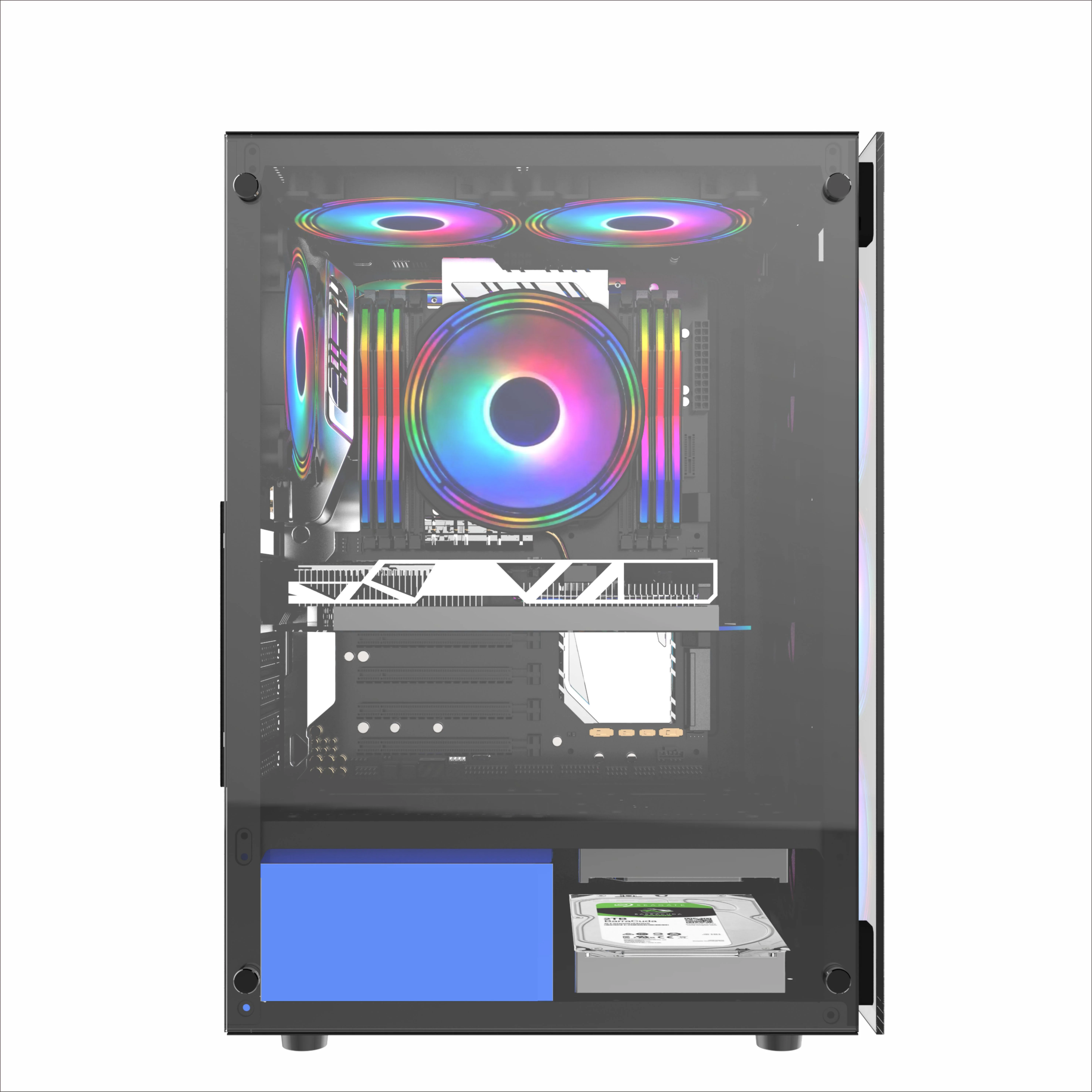 5.Free shining cooler fans: Also, there is a sense of style to this Intel Desktop Gaming PC with shining cooler fans and customizable RGB LEDs.(We will re-install the red fans with it before shipment,the stock in Russian warehouse can't be changed the fan's color,please understand.)