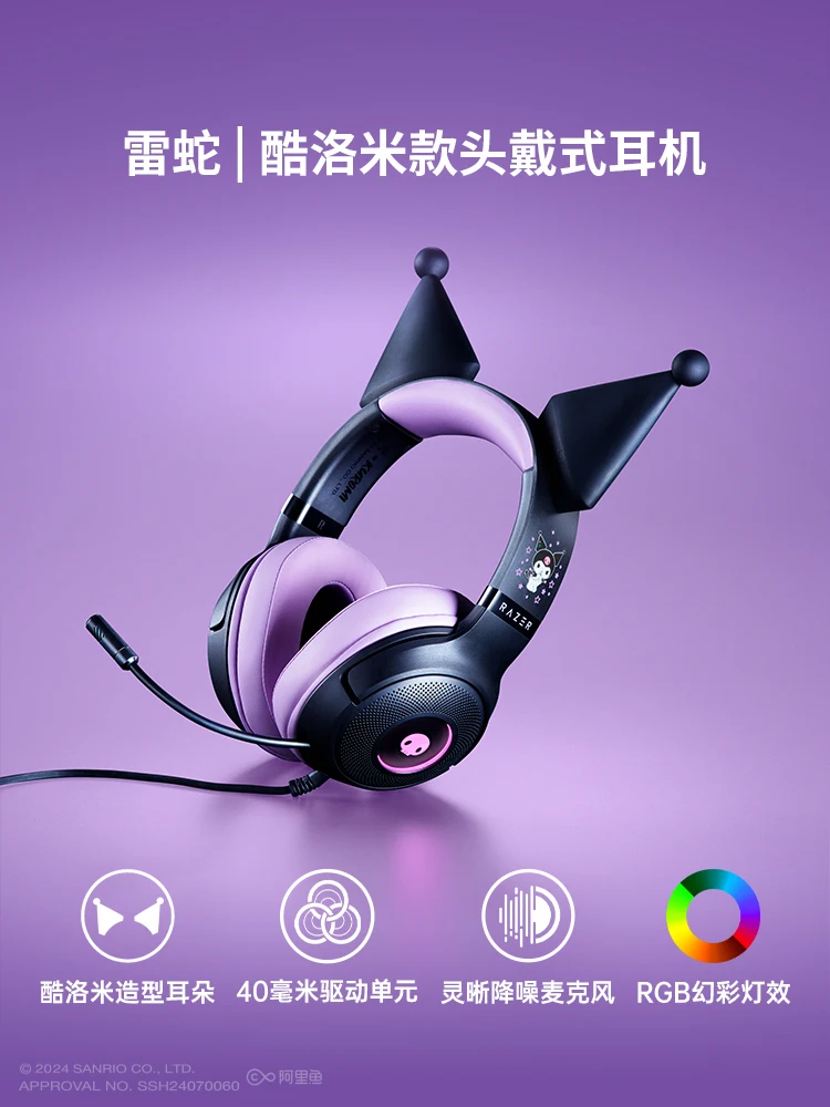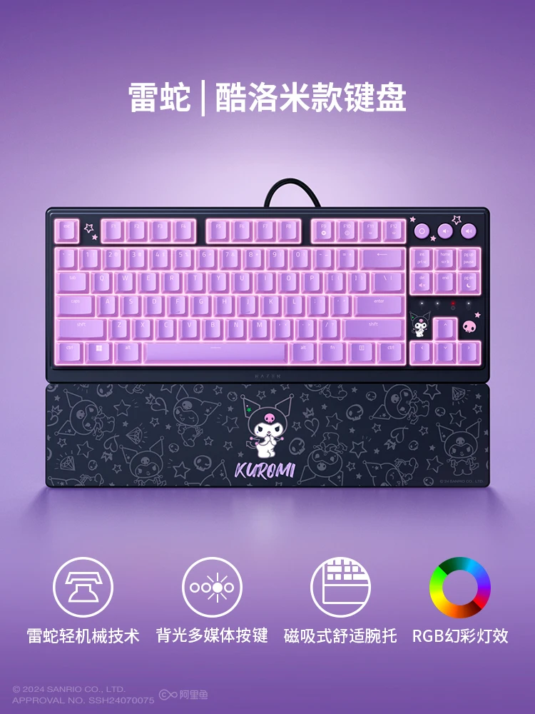 Razer Sanrio Kuromi Limited Edition Keyboard+Death Adder Basic Gaming Mouse+Goliath Soft Mouse Pad Bundle