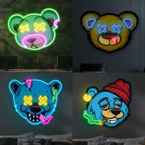 Custom Neon Sign Anime Bear Artwork Acrylic LED Neon Light Gaming Room Bedroom Wall Decor Art for Kids Birthday Gifts